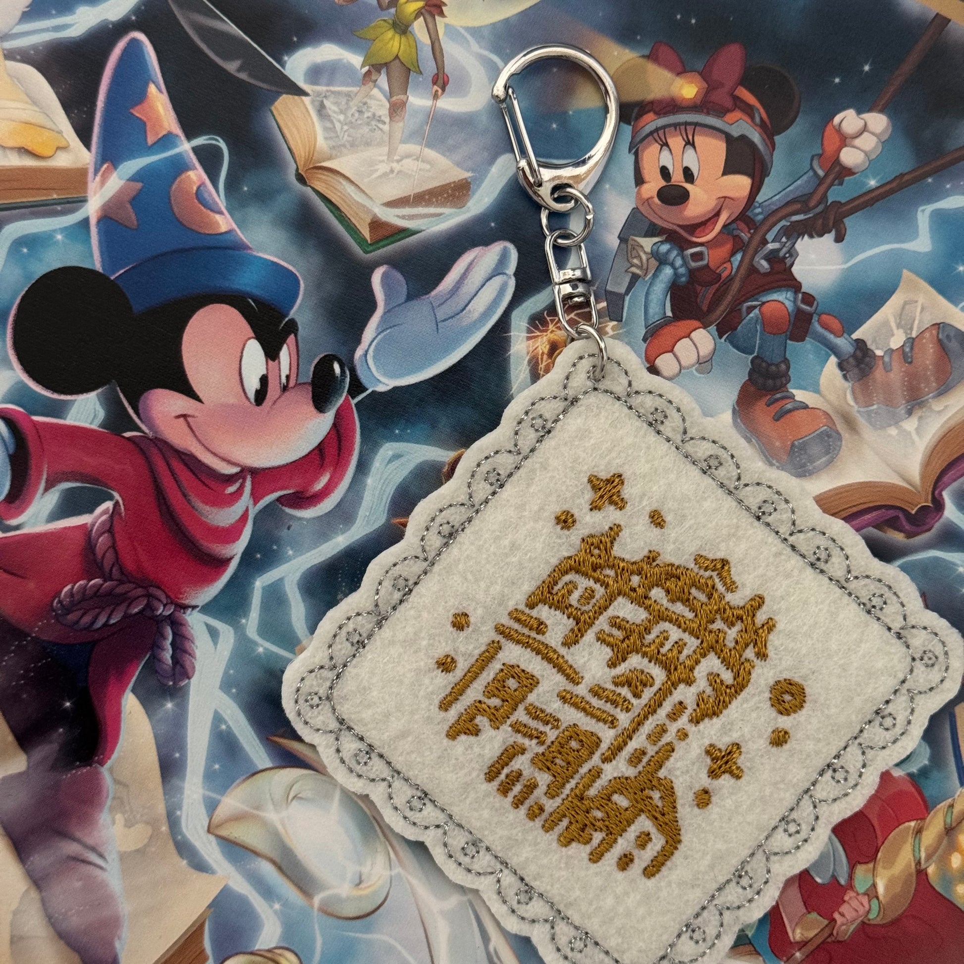 Every charm is beautifully framed with silver metallic thread, with each park icon stitched in its signature color for a magical pop of detail. Perfect for your park bag, everyday tote, or backpack, these charms add a little extra magic wherever your adventures take you. 🌟